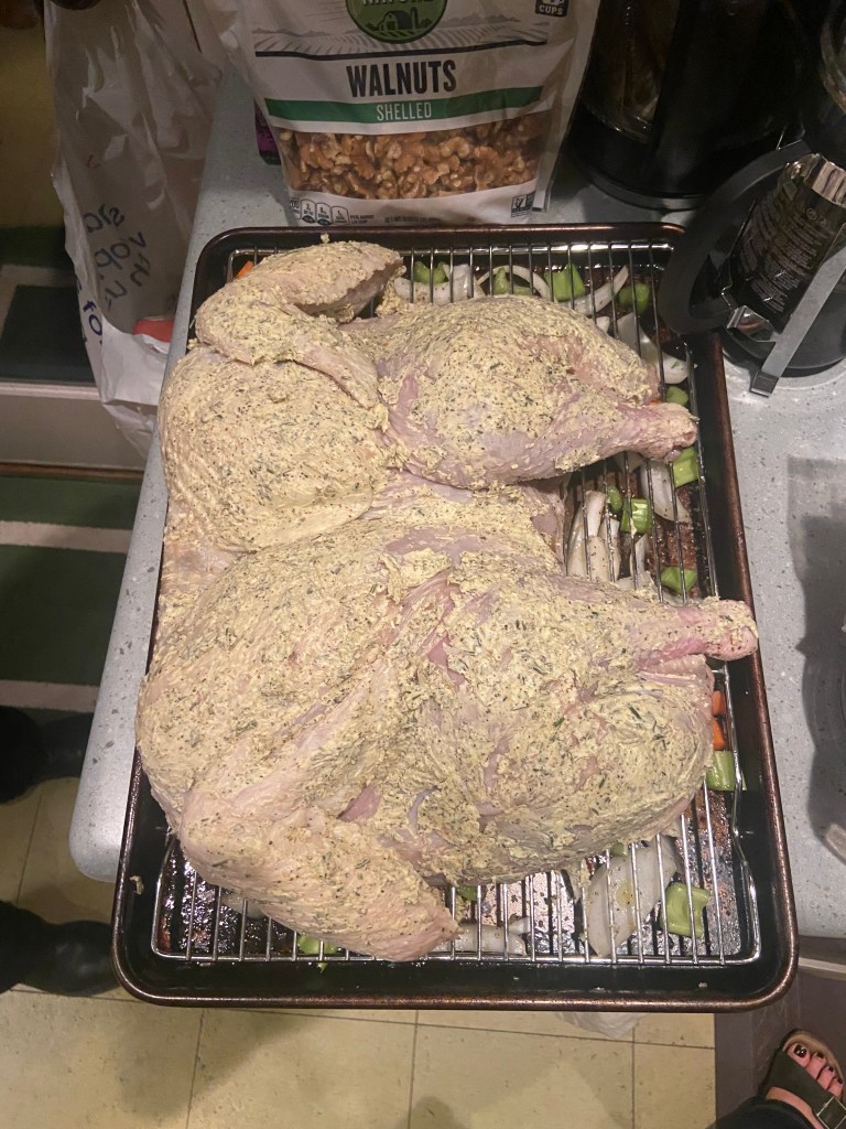 - Turkey & Gravy – again, not my doing, but the Turkey was spatchcocked and slathered in an herb butter